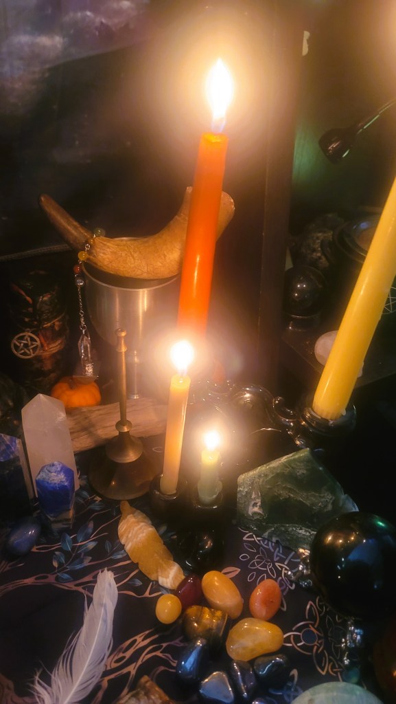 Decorating my Altar to align with the Sabbats is a part of my tradition that helps to keep me balanced in my practice. Below I have shared a gallery of my Autumn Altar if folks would like to use it for ideas, however; just as there is no right or wrong way to practice there is no right or wrong way to set up your Altar. In future blogs we will discuss different traditions and types of Altars.